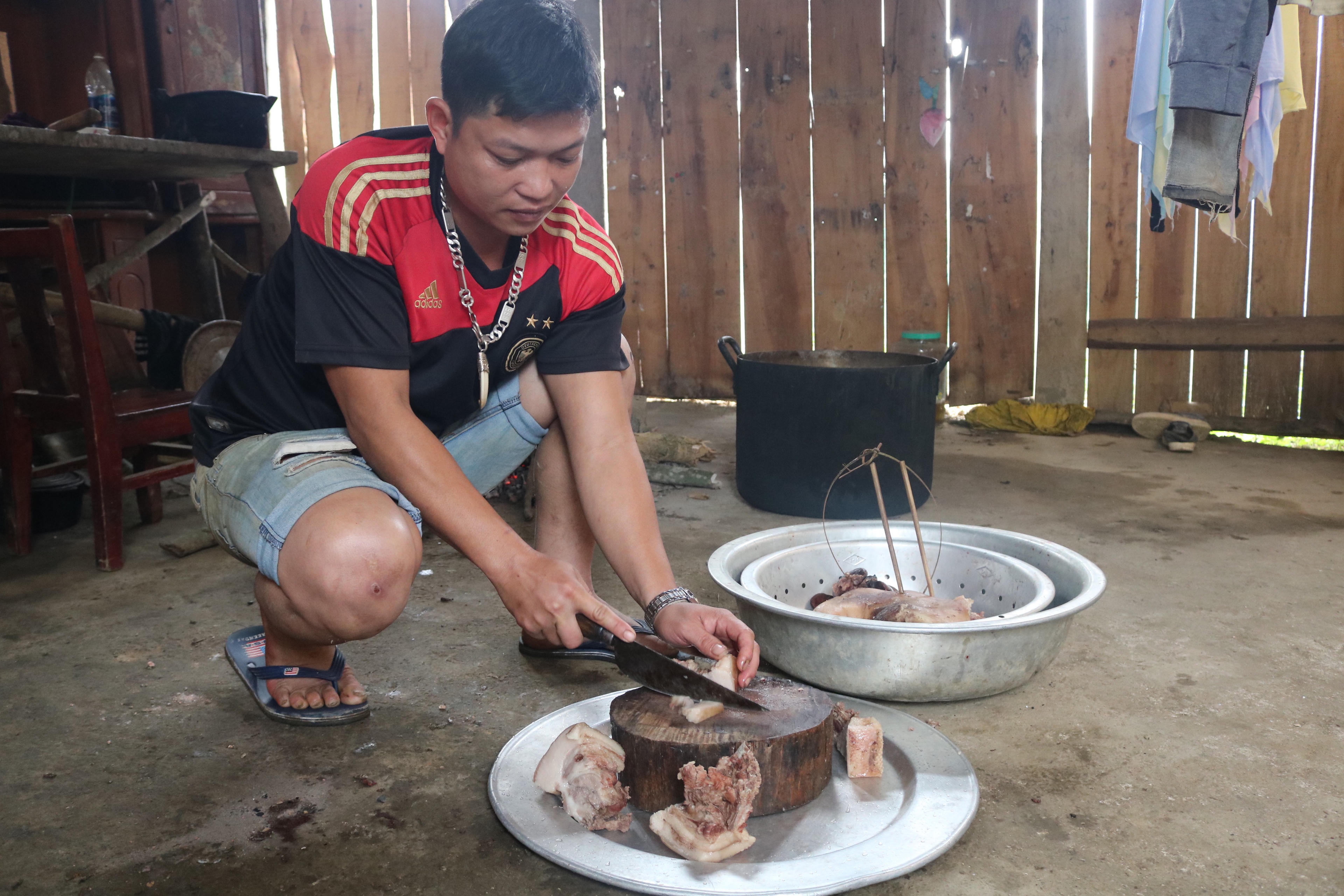 Họ hàng nội ngoại gia đình ông đã có mặt đông đủ, lợn đã thịt sẵn, chỉ chờ các cụ cao tuổi có chức sắc đến làm lễ cúng báo cáo ông bà tổ tiên.