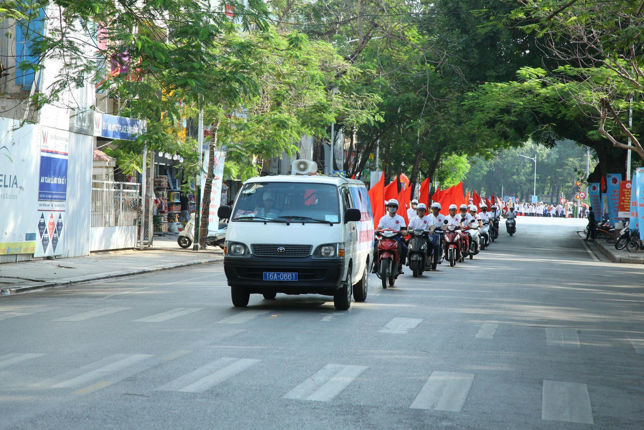 Đoàn diễu hành mit tinh cổ động toàn dân phòng chống HIVAIDS tại Hải Phòng. (Ảnh: Bộ YT). |