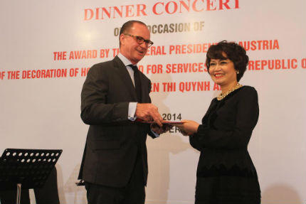 Nhưng những đồng nghiệp và bạn bè đã đồng hành cùng bà từ năm 1998 (thành lập Cty Invest Pro) đều biết rằng, với tấm Huân chương Vàng của Tổng thống Liên bang Cộng hòa Áo được trao tặng cho bà chiều qua thì đó không chỉ là kết quả của những mối quan hệ hợp tác hiệu quả giữa bà, giữa Cty Invest Pro với các đối tác, doanh nghiệp Cộng hòa Áo trong lĩnh vực kinh tế, thương mại, mà còn là từ những hoạt động tài trợ, quảng bá văn hóa giữa Việt Nam và Áo, góp phần củng cố “cầu nối” cho sự phát triển quan hệ hữu nghị giữa hai nước.