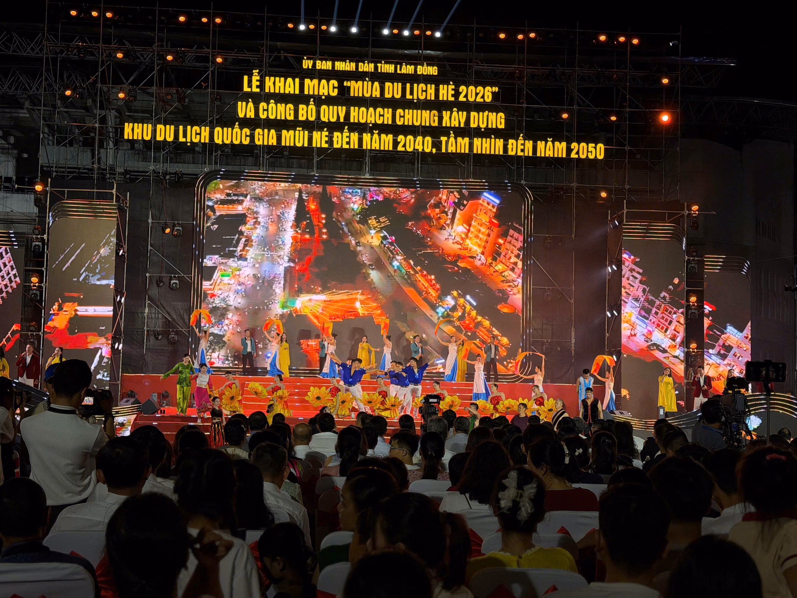 Tối 26/4, tại phường Mũi Né, UBND tỉnh Lâm Đồng tổ chức Lễ khai mạc “Mùa du lịch hè năm 2026” và Công bố Quy hoạch chung xây dựng Khu du lịch quốc gia Mũi Né.