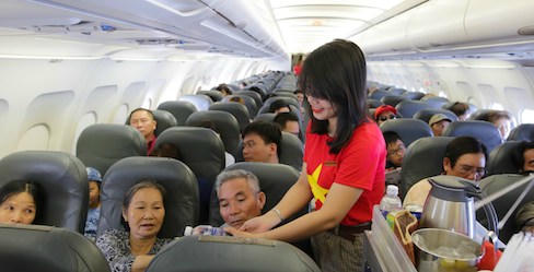 | Trang phục cờ đỏ sao vàng trên các chuyến bay Vietjet |