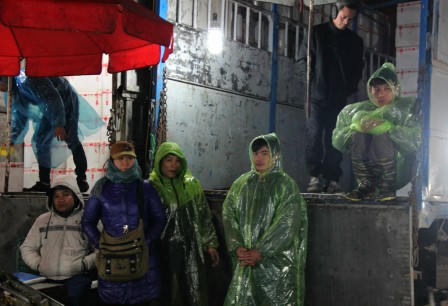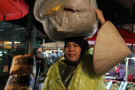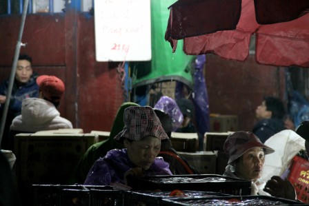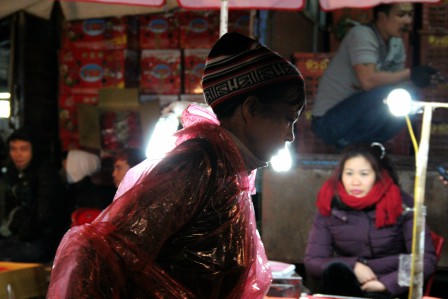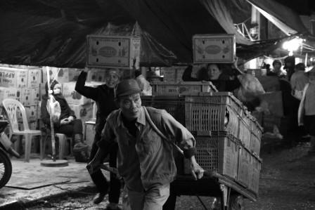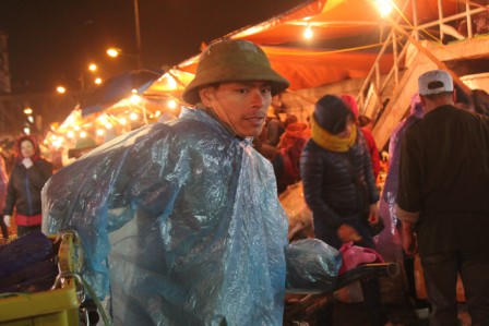| Nhưng tại chợ đầu mối Long Biên, người lao động vẫn lặng lẽ làm việc mặc cho mưa phun, gió quạt để mưu sinh. |