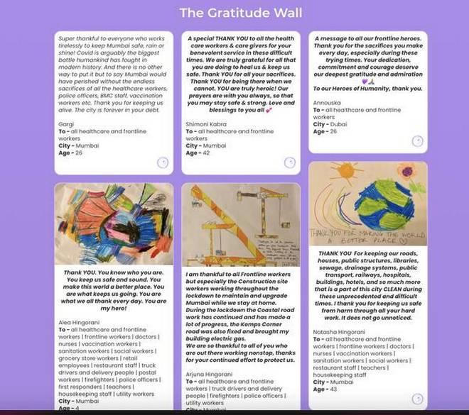 Mặt khác, cũng có một “Dự án Tri ân” khác được khởi động vào tuần cuối cùng của tháng 5/2021 bởi bảy cô gái trẻ sống tại Mumbai (Ấn Độ). Ý tưởng có họ là tạo ra một website như một “cuốn nhật ký” mà tất cả mọi người có thể đăng nhập và đăng tải lời cảm ơn của mình tới các y, bác sĩ. Đến nay “Dự án Tri ân” này đã có hơn 500 bài đăng, trong đó thành phần tham gia rất đa dạng, từ những người trẻ tuổi đến các bậc cao niên, gồm cả những gia đình có thành viên đang chống chọi với Covid và cả những kiều bào Ấn Độ ở ngoài nước.