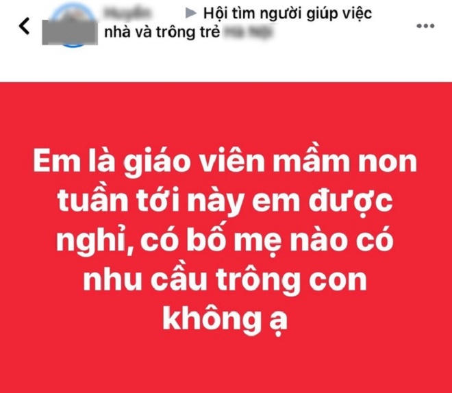 Việc nhận giáo viên về làm giúp việc thời vụ cũng khiến nhiều gia đình ở Hà Nội yên tâm. "Tôi sẵn sàng trả bất cứ chi phí, yêu cầu nào của trung tâm để tìm được người vừa có thể trông con, vừa giúp con học chữ, tập tô trong thời gian nghỉ học", chị Nguyễn Thị Oanh (quận Thanh Xuân) chia sẻ.