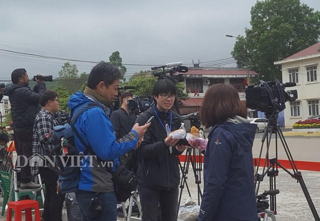 Đến sáng nay, lượng phóng viên đổ về địa điểm này mỗi lúc một nhiều. Theo ghi nhận của phóng viên Dân Việt, các hãng thông tấn của Hàn Quốc, Nhật Bản chiếm đa số. Các phóng viên bám trụ hầu như từ sáng đến tối. Họ làm việc không ngừng nghỉ, mọi lúc mọi nơi để có thể đưa thông tin nhanh và chính xác nhất. Nhiều phóng viên phải ăn tạm bánh mỳ, mỳ tôm qua bữa để không bỏ sót những hình ảnh tại ga Đồng Đăng (Lạng Sơn).