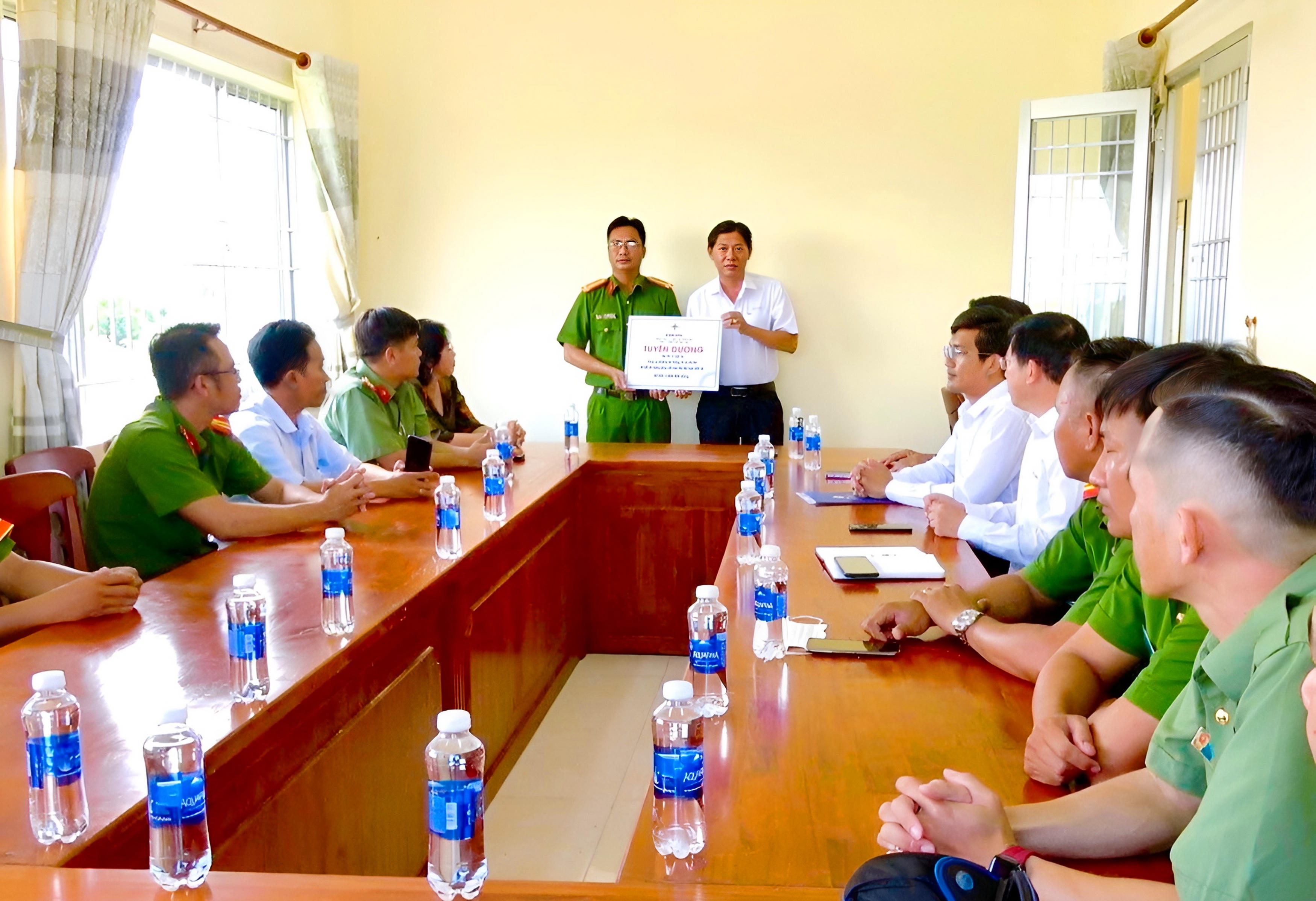 Đại diện Công ty Điện lực Bạc Liêu tuyên dương Công an phường Hộ Phòng, thị xã Giá Rai đã kịp thời phát hiện, xử lý đối tượng cắt trộm dây cáp điện. |