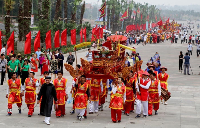 | Rước kiệu truyền thống - nghi lễ quan trọng mỗi dịp Giỗ Tổ Hùng Vương. (Ảnh Vũ Tuân) |