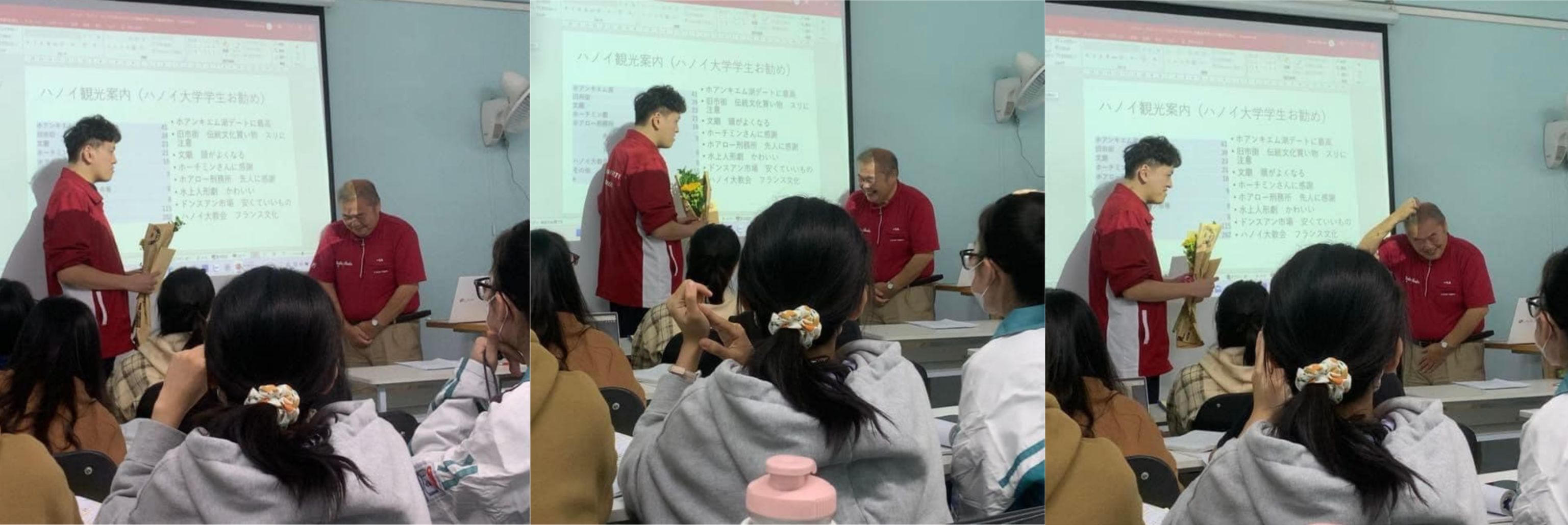 Một giảng viên người Nhật đang dạy tiếng Nhật tại Trường Đại học Hà Nội có những cảm xúc vô cùng "đáng yêu" khi nhận được quà vào Ngày Nhà giáo Việt Nam: ngại ngùng, xấu hổ, đứng chắp tay rồi gãi đầu. Theo bài đăng chia sẻ, vì tại Nhật không có ngày lễ tri ân các thầy cô giáo nên khi giảng dạy tại Việt Nam, lần đầu tiên nhận được quà thầy mới có cảm xúc như vậy.