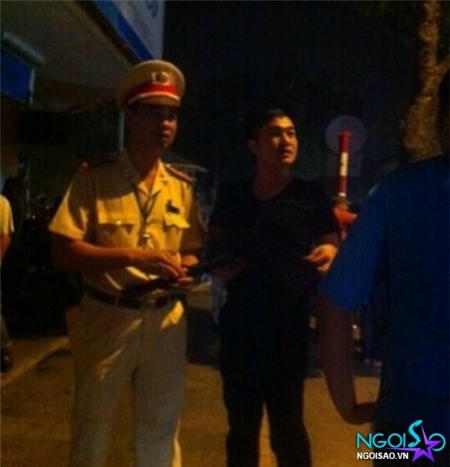 Cùng với lái xe và một người bạn, chàng ca sỹ này đã vui vẻ tỏ thái độ hợp tác với các chiến sĩ. Sau khi lái xe xuất trình đầy đủ giấy tờ và bằng lái, cả ba đã cười tươi lên xe với… một biên lai xử phạt lỗi đi sai làn đường.