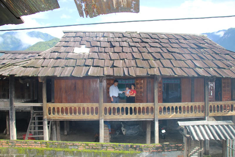 Những ngôi nhà sàn cổ gỗ Pơ Mu sở Ngọc Chiến. |