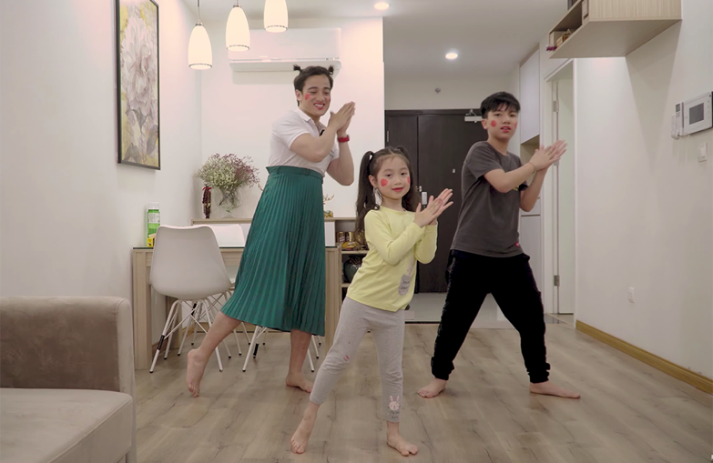 Đặc biệt, MV lồng trong những cảnh vui chơi của ba bố con còn có điệu nhảy “rửa tay” đang rất “hot” hiện nay, như là thông điệp của Huyền Trang cùng ekip muốn gửi tới mọi người trong việc giữ gìn vệ sinh, nâng cao sức khoẻ để chống dịch Covid - 19.