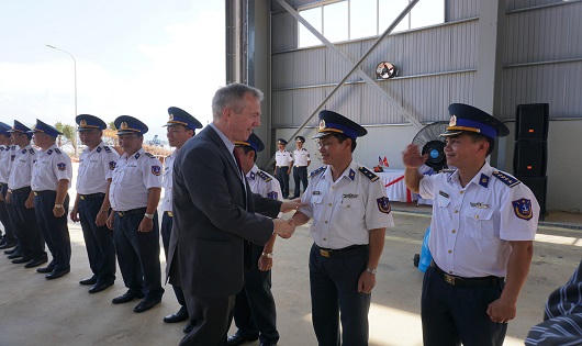 (PLO) - Đại sứ quán Mỹ tại Việt Nam ngày 22/5 cho biết, Đại sứ Mỹ tại Việt Nam Ted Osius cùng ngày đã chính thức bàn giao 6 tàu tuần tra Metal Shark 45-foot (tương đương 14 mét) cho Cảnh sát Biển Việt Nam (CSBVN) tại Quảng Nam, Vùng 2, đánh dấu một bước tiến quan trọng nữa trong việc mở rộng hợp tác an ninh giữa Mỹ và Việt Nam.