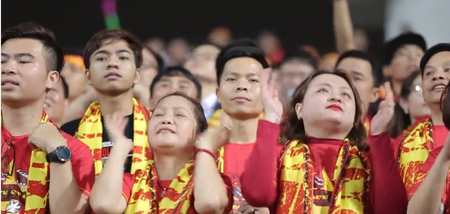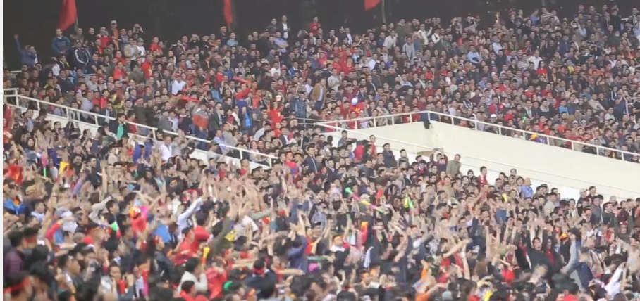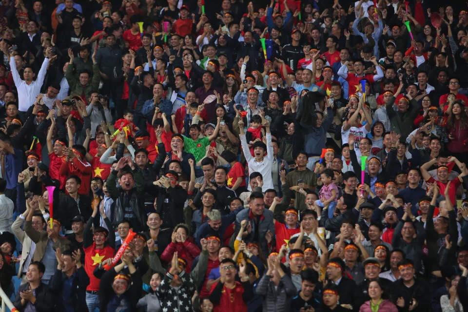 SVĐ Mỹ Đình đã không còn thừa một chỗ trống, tất cả các hàng ghế đã chật cứng các cổ động viên. Tiếng hò reo không ngớt, nụ cười rạng rỡ trên môi cổ động viên đội áo đỏ.
