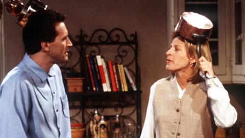 Ellen DeGeneres và Tony Carreiro trên trường quay phim Ellen vào năm 1994. DeGeneres xuất hiện trong vai trò người đồng tính trước 42 triệu người xem năm 1997.