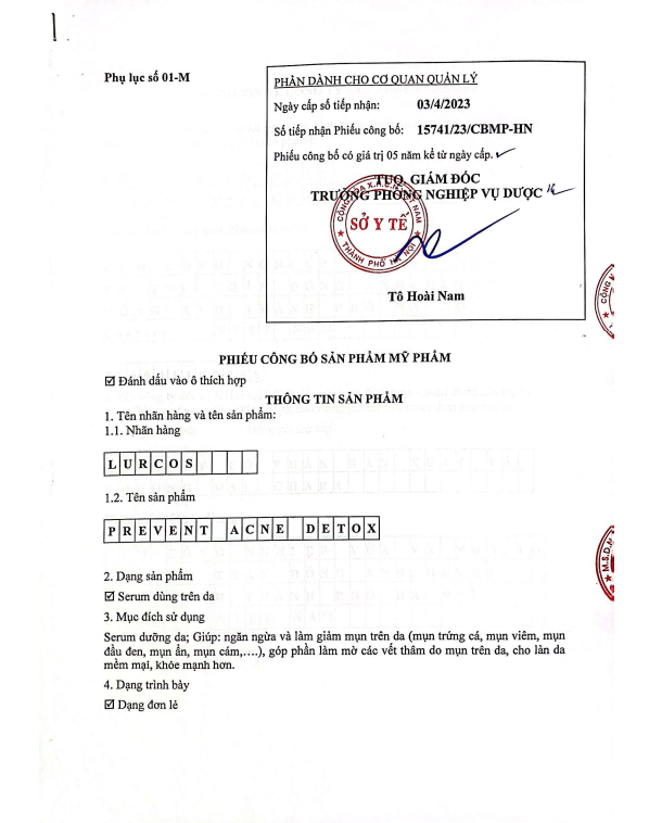 Thêm vào đó, mới đây cơ quan chức năng tiếp tục thực hiện đợt hậu kiểm, và đã thu mẫu 2 mã sản phẩm Lurcinn Meladi Professional; Lurcos Prevent Acne Detox, gửi Viện Kiểm nghiệm thuốc Trung ương phân tích, kiểm nghiệm các thành phần có thể gây hại cho da. Kết quả phân tích cho thấy sản phẩm Lurcinn Meladi Professional; Lurcos Prevent Acne Detox không chứa chất cầm, an toàn với mọi loại da.