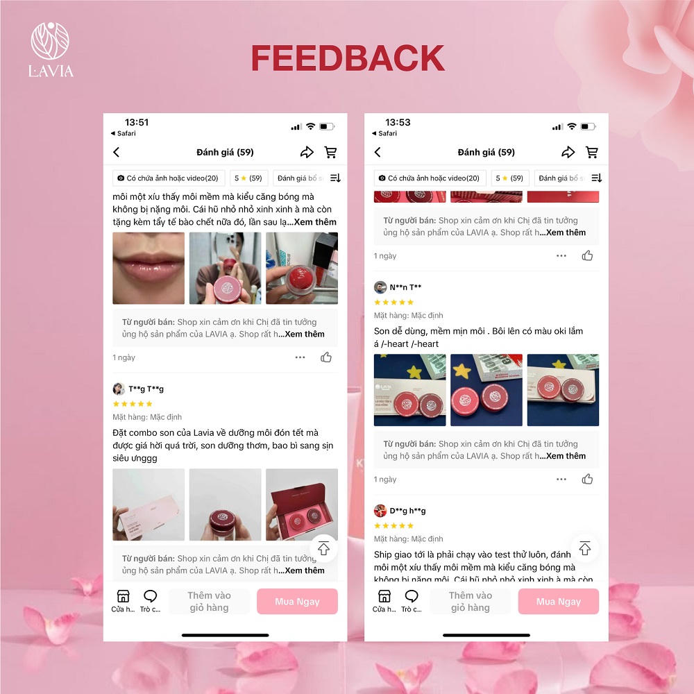 Phản hồi tích cực của khách hàng sử dụng son dưỡng Lavia