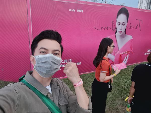 Nam Cường checkin cùng tấm poster cỡ lớn tại sân vận động. (Ảnh: Facebook nhân vật)