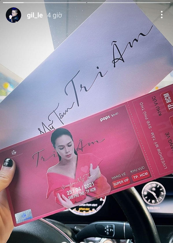 Gil Lê cầm sẵn tấm vé VIP trên tay. (Ảnh: Chụp màn hình)