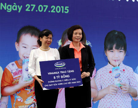 Với vai trò của đơn vị tài trợ duy nhất cho chương trình Quỹ sữa “Vươn Cao Việt Nam” trong suốt 7 năm qua, bà Bùi Thị Hương, Giám đốc Điều hành Vinamilk cho biết, thông qua Quỹ sữa Vươn Cao Việt Nam, với tinh thần trách nhiệm cao đối với cộng đồng, năm 2015 Vinamilk tiếp tục dành 8 tỷ đồng cho trẻ em nghèo được uống sữa miễn phí.