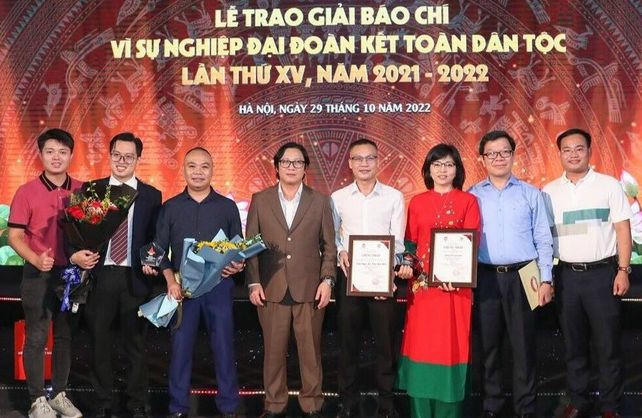 Ngày 29/10, tại Hà Nội đã long trọng diễn ra lễ trao Giải báo chí “Vì sự nghiệp Đại đoàn kết toàn dân tộc” lần thứ XV, năm 2021-2022. Trong lễ trao giải, Báo Pháp luật Việt Nam đã được vinh danh khi đã được cả hai giải thưởng cao quý. Loạt bài 4 kỳ “Đoàn kết, đồng lòng chiến thắng đại dịch” của tác giả Lương Thị Vân Anh đã đạt giải B; Loạt bài 4 kỳ “Đoàn kết tôn giáo, yếu tố quan trọng trong khối đại đoàn kết dân tộc” của nhóm tác giả Trần Ngọc Hà, Trần Đức Anh vinh dự giành giải C.