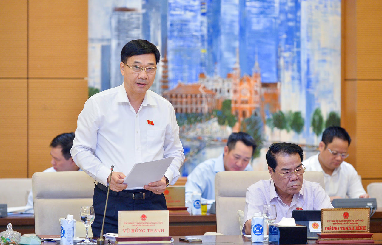Chủ nhiệm Ủy ban Kinh tế Vũ Hồng Thanh trình bày Báo cáo thẩm tra. |