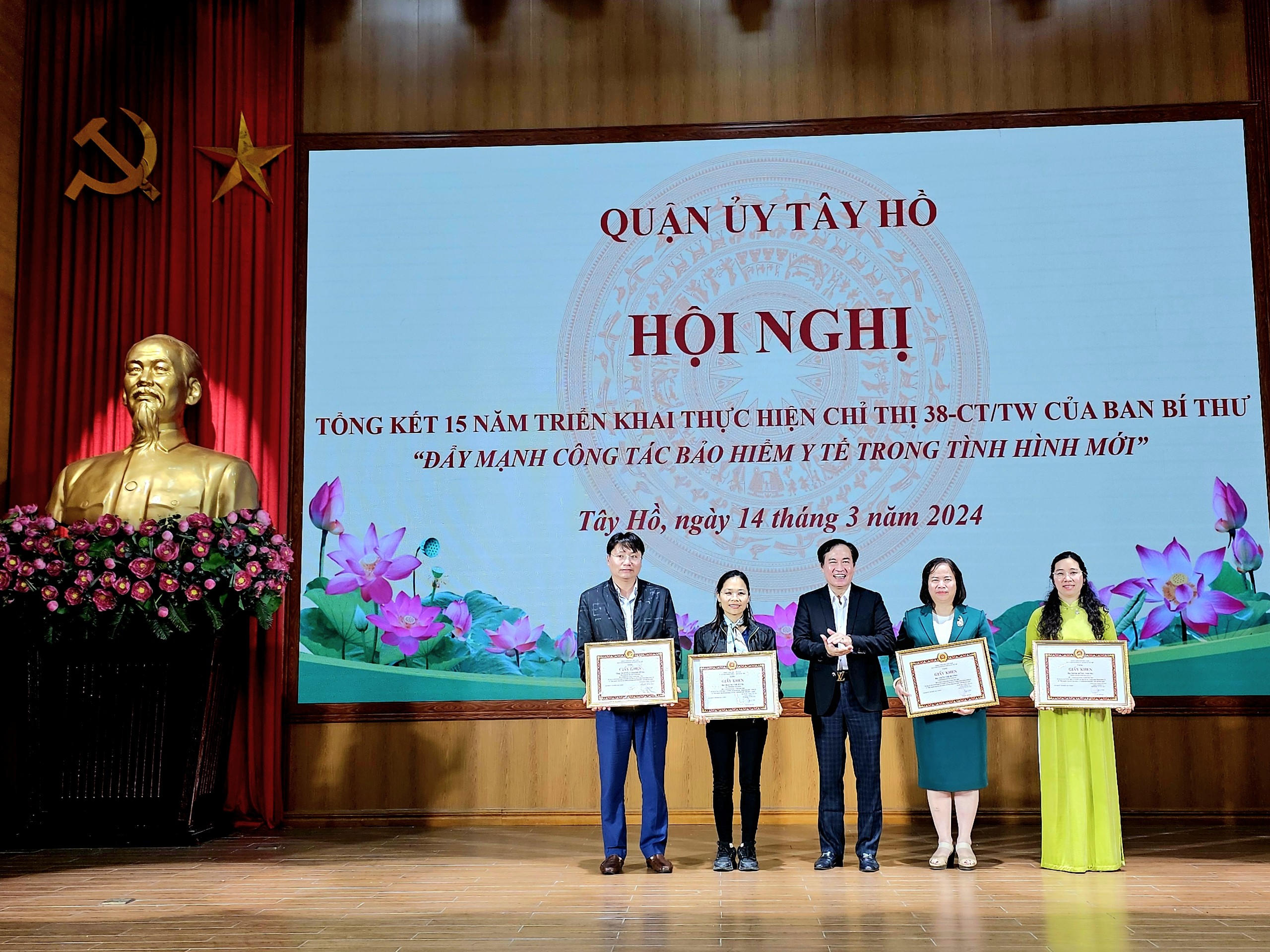 (PLVN) - Chiều 14/3/2024, Quận ủy Tây Hồ (Hà Nội) tổng kết 15 năm thực hiện Chỉ thị 38-CT/TW, ngày 07/9/2009 của Ban Bí thư khóa X “về đẩy mạnh công tác bảo hiểm y tế trong tình hình mới”.