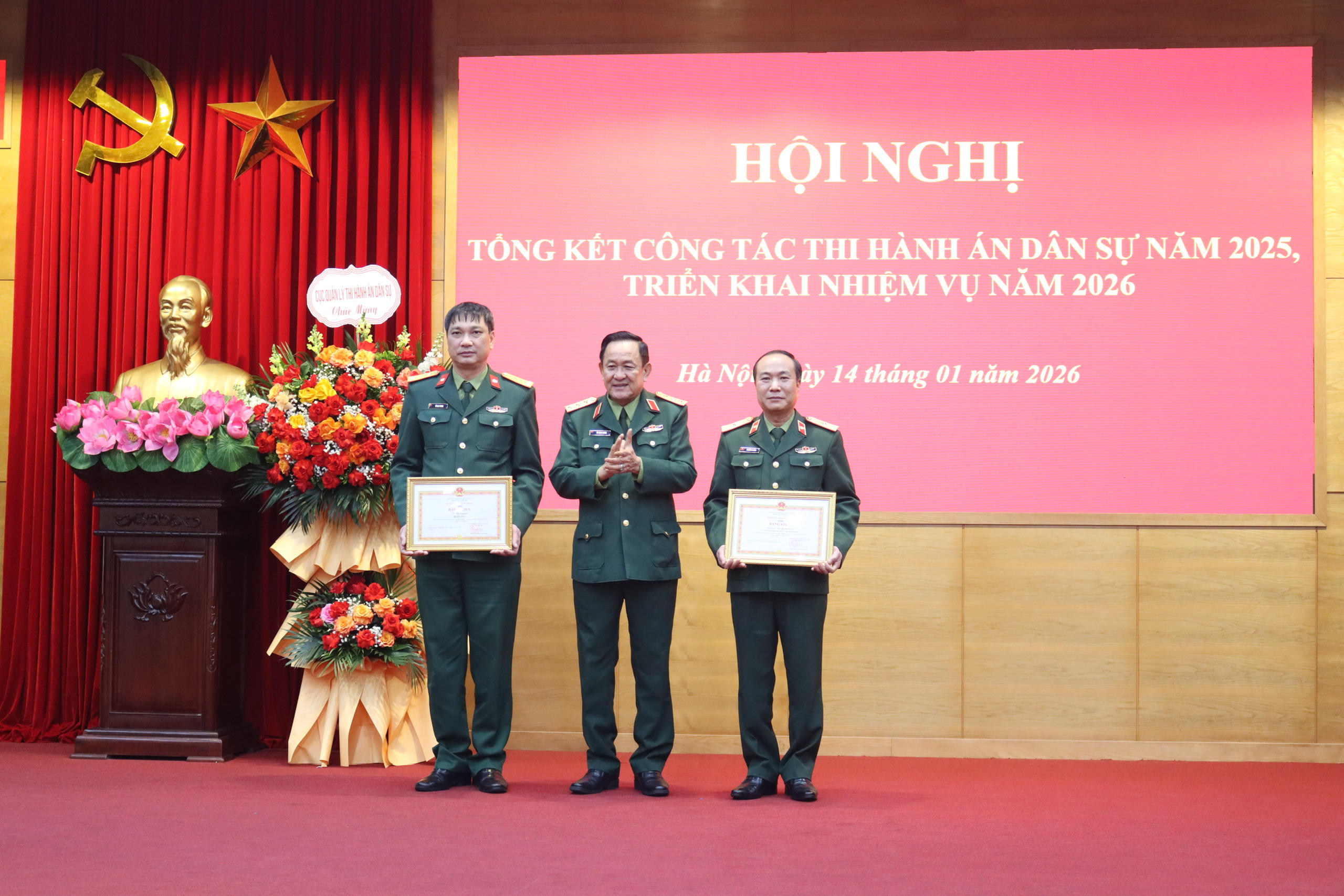 Ngày 14/1, Cục Thi hành án (THA) Bộ Quốc phòng tổ chức Hội nghị tổng kết công tác THA năm 2025, triển khai nhiệm vụ năm 2026. Tham dự có Thượng tướng Võ Minh Lương, Thứ trưởng Bộ Quốc phòng; Cục trưởng Cục Quản lý THA dân sự, Bộ Tư pháp Nguyễn Thắng Lợi.
