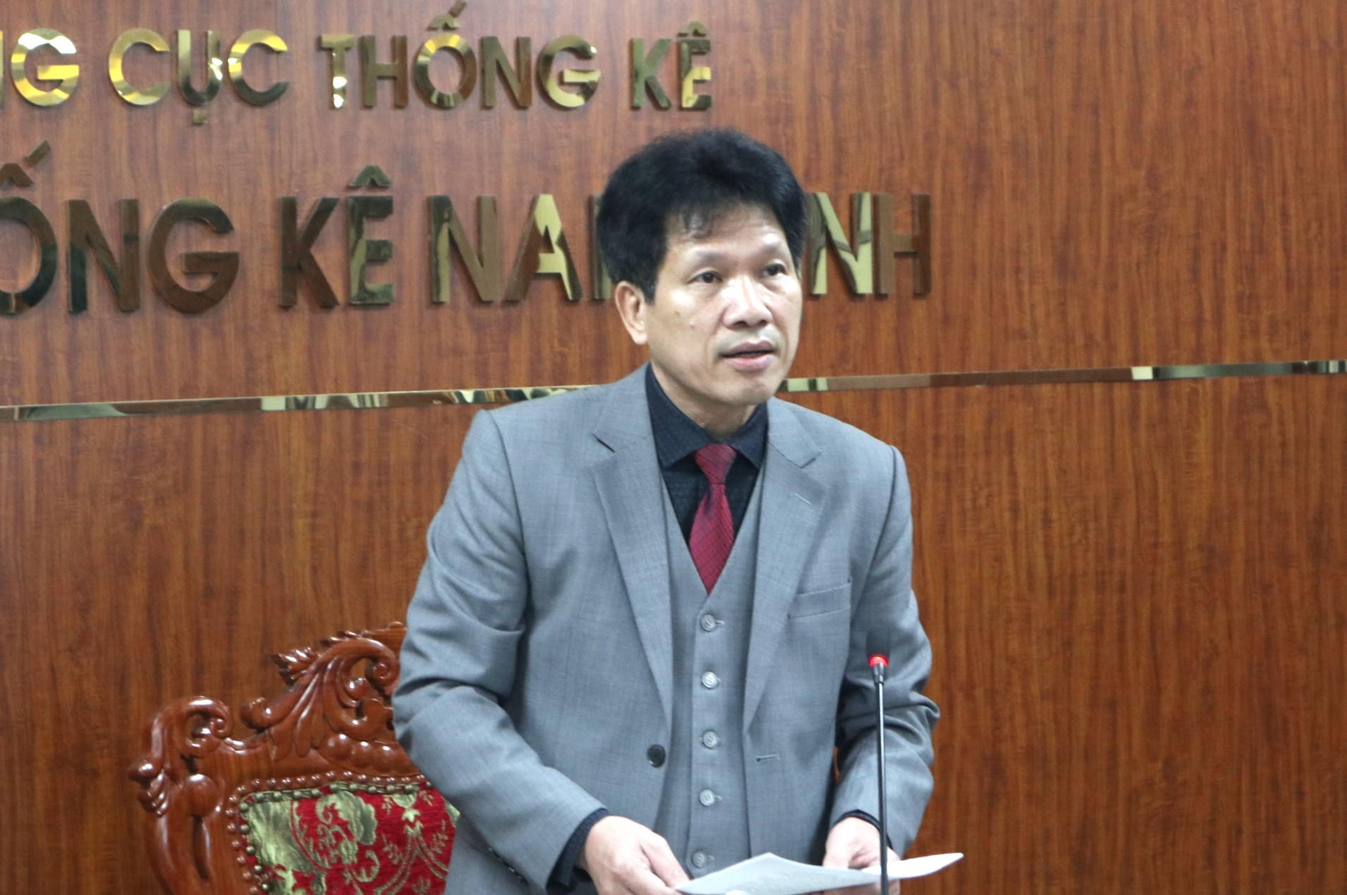 Ông Lê Mạnh Hồng - Cục trưởng Cục Thống kê tỉnh Nam Định phát biểu. |