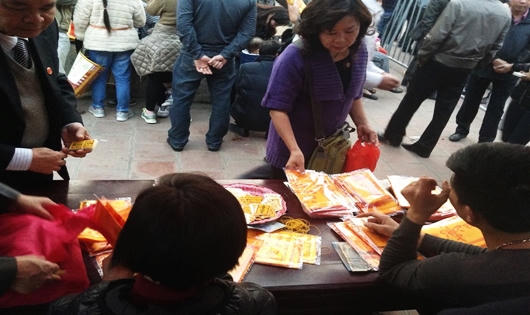 Cạnh đó, nhiều bàn được bố trí làm dịch viết sớ, ấn cũng khá đông.