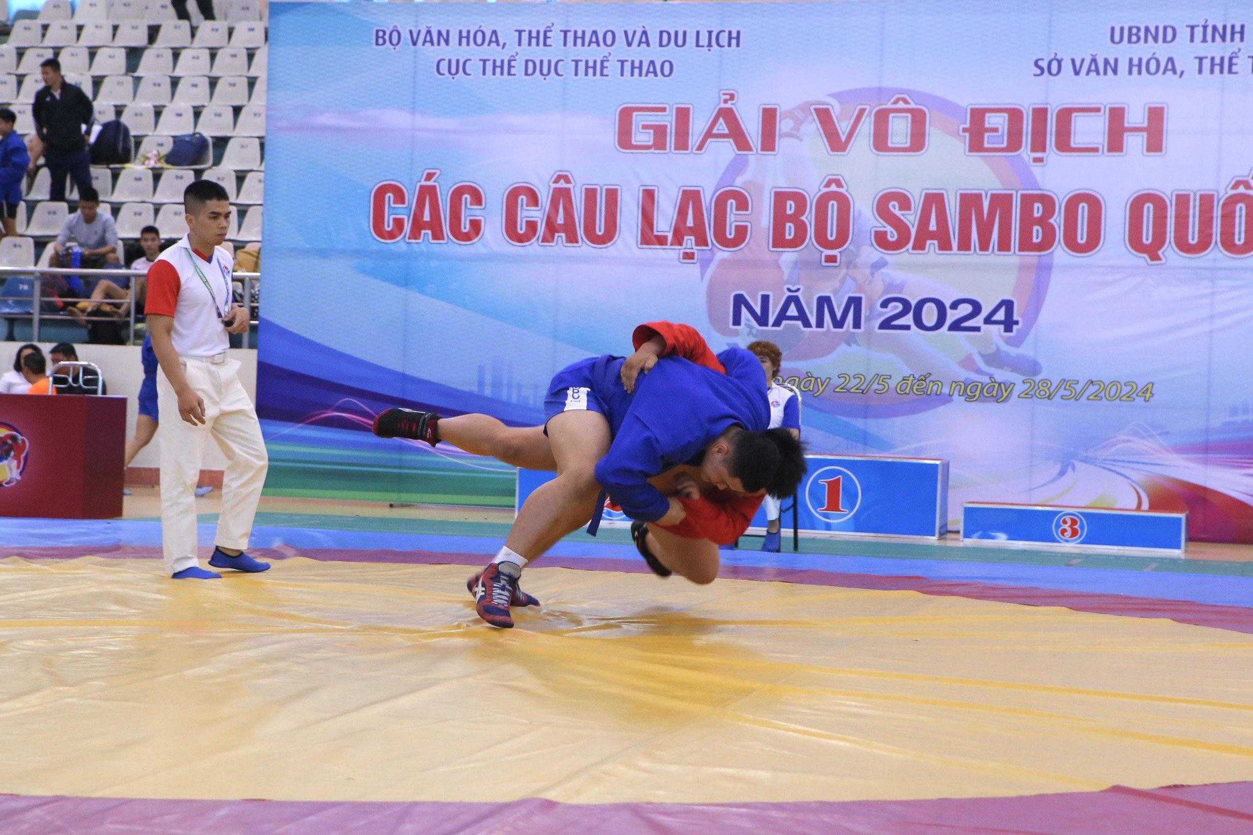(PLVN) - Sáng 25/5, tại Nhà thi đấu Trần Quốc Toản tỉnh Nam Định, Sở Văn hóa, Thể thao và Du lịch phối hợp với Cục Thể dục thể thao tổ chức Lễ khai mạc giải Vô địch các CLB Sambo quốc gia năm 2024.