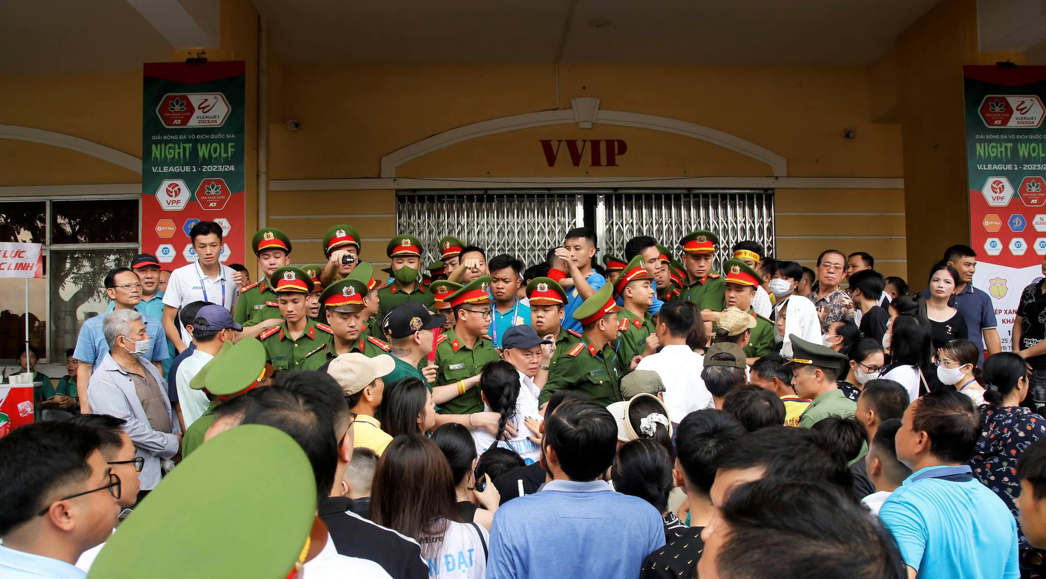 Lực lượng chức năng căng mình làm nhiệm vụ do lượng cổ động viên quá đông |