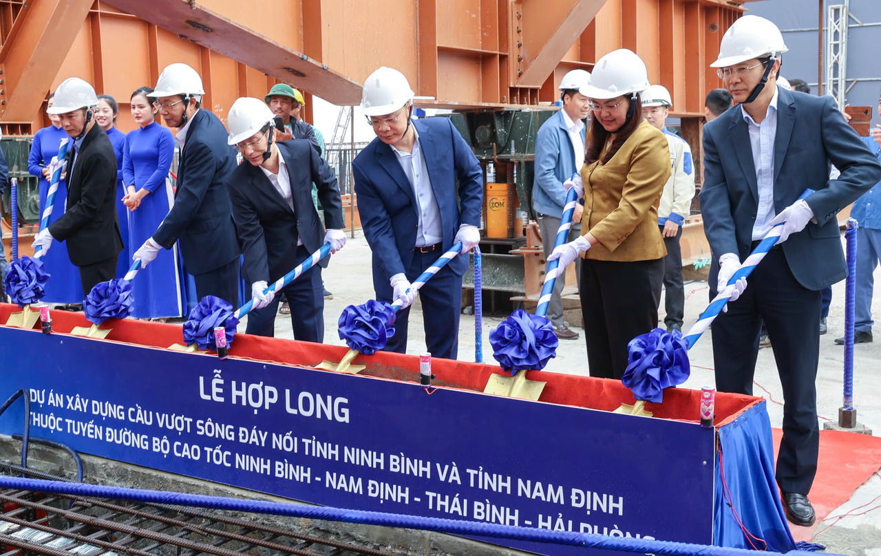 Nam Định tiến hành nghi thức hợp long cầu vượt sông Đáy