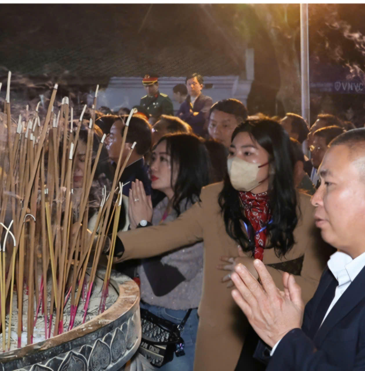 Người dân thành kính dâng hương tưởng nhớ các vị Vua Trần và Đức Thánh Trần. |