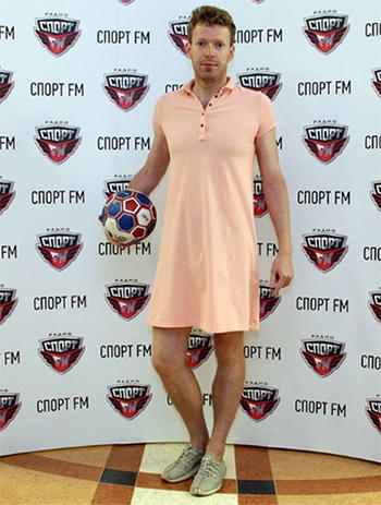 Chiến thắng của Nga buộc người dẫn chương trình thể thao của kênh Sport FM phải thực hiện lời hứa. Hôm qua, anh xuất hiện ở nơi làm việc trong một chiếc váy thun liền màu hồng đào, đi giày thể thao.