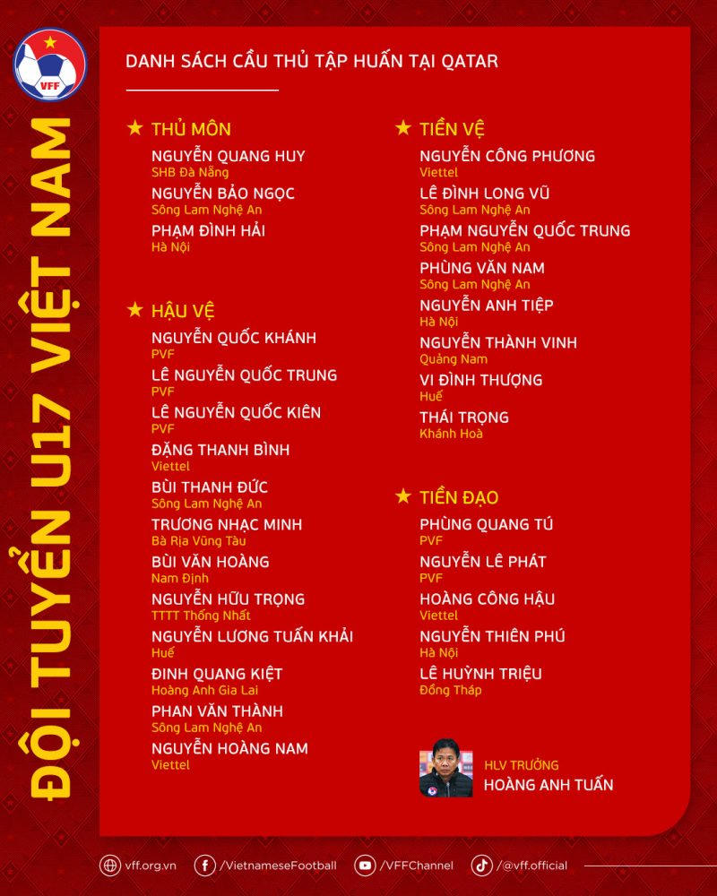 Đây là kế hoạch chuẩn bị cho mục tiêu tại VCK U17 châu Á 2023 tổ chức tại Thái Lan từ ngày 15/6 đến ngày 2/7/2023. Đội tuyển U17 Việt Nam sẽ có 4 ngày tập luyện tại đây với một trận đấu giao hữu rất chất lượng trước chủ nhà U17 Qatar vào ngày 21/5.