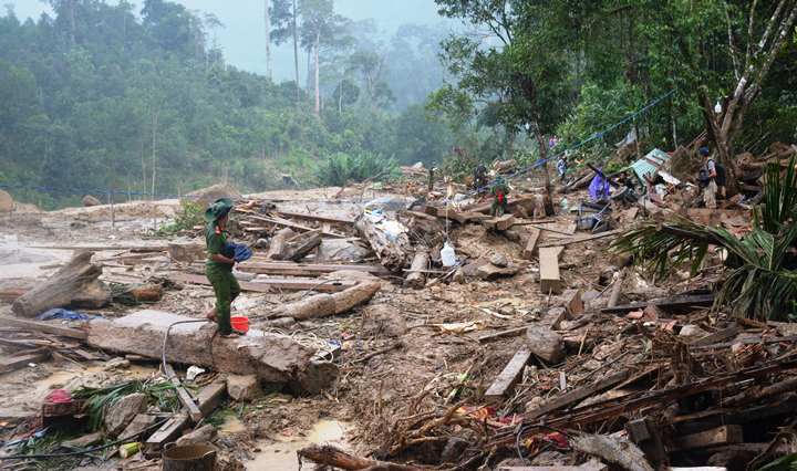 | Hiện trường vụ sạt lở Trà Leng vùi chết 8 người, 14 người khác đang mất tích |