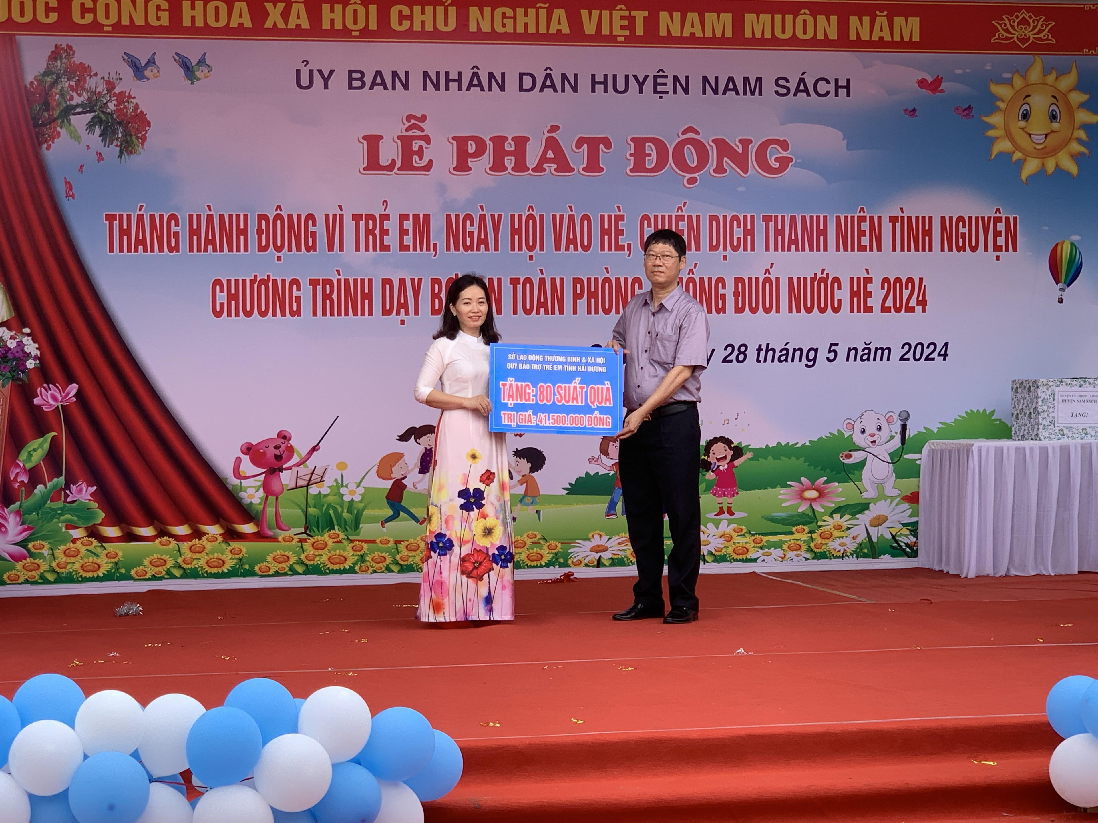 Dịp này, UBND huyện Nam Sách đã tổ chức trao tặng gần 500 suất quà (mỗi suất trị giá 500.000 đồng) với sự tham gia hỗ trợ từ Sở Lao động – Thương binh và xã hội tỉnh Hải Dương; Thường trực Huyện uỷ, lãnh đạo UBND huyện Nam Sách; Hội Bảo trợ người khuyết tật và trẻ em của tỉnh. Đặc biệt, trong Tháng hành động vì trẻ em năm nay, một số doanh nghiệp trong và ngoài huyện cũng rất tích cực ủng hộ.