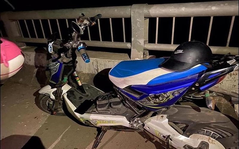 Chiếc xe máy điện của nạn nhân được phát hiện ở trên cầu cùng lá thư tuyệt mệnh. |