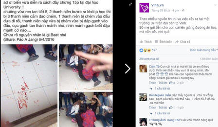 Trước đó, khoảng 11h30 ngày 6/4, Lữ Trọng Đạt (SN 1997, trú tại huyện Quỳ Châu, Nghệ An) là sinh viên Trường Đại học Vinh tan học bước ra khỏi cửa lớp thì bất ngờ bị ba thanh niên lạ mặt dùng gạch đánh vào đầu khiến Đạt gục xuống đất bất tỉnh.