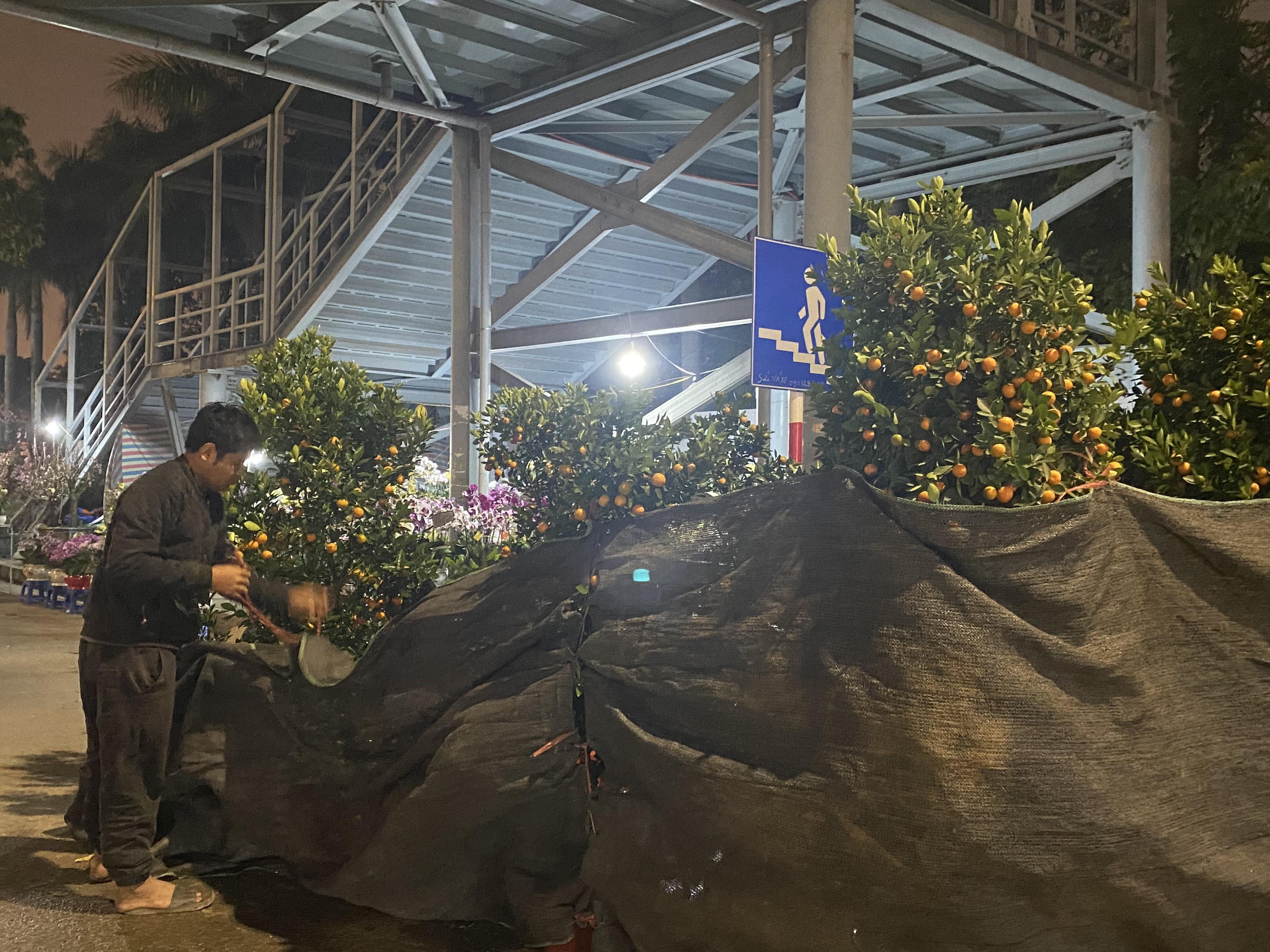 Nằm vỉa hè Hà Nội qua đêm mong bán hết đào, quất trước giao thừa