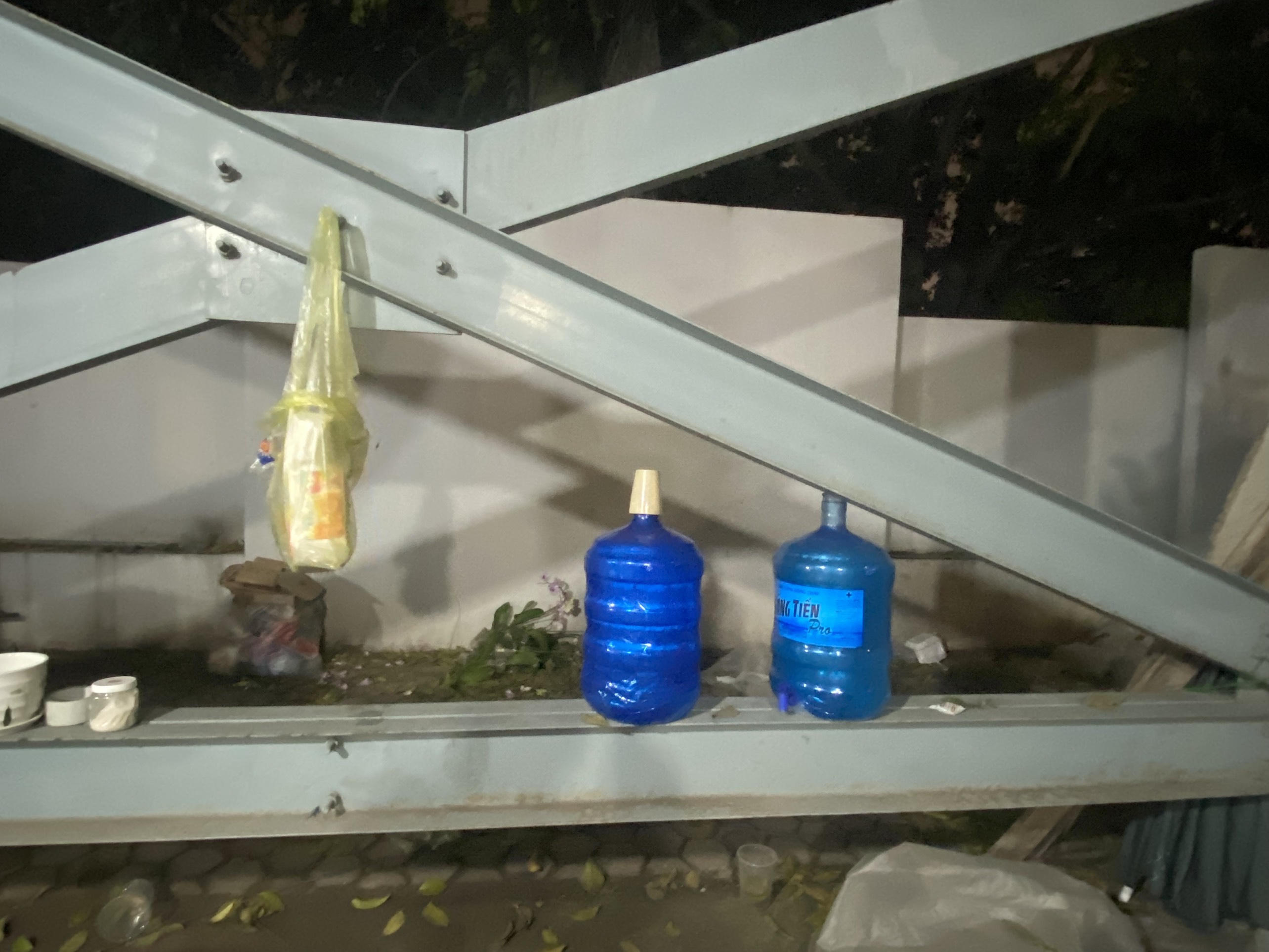 Đồ dùng sinh hoạt trang bị tạm bợ phục vụ người bán hàng. |