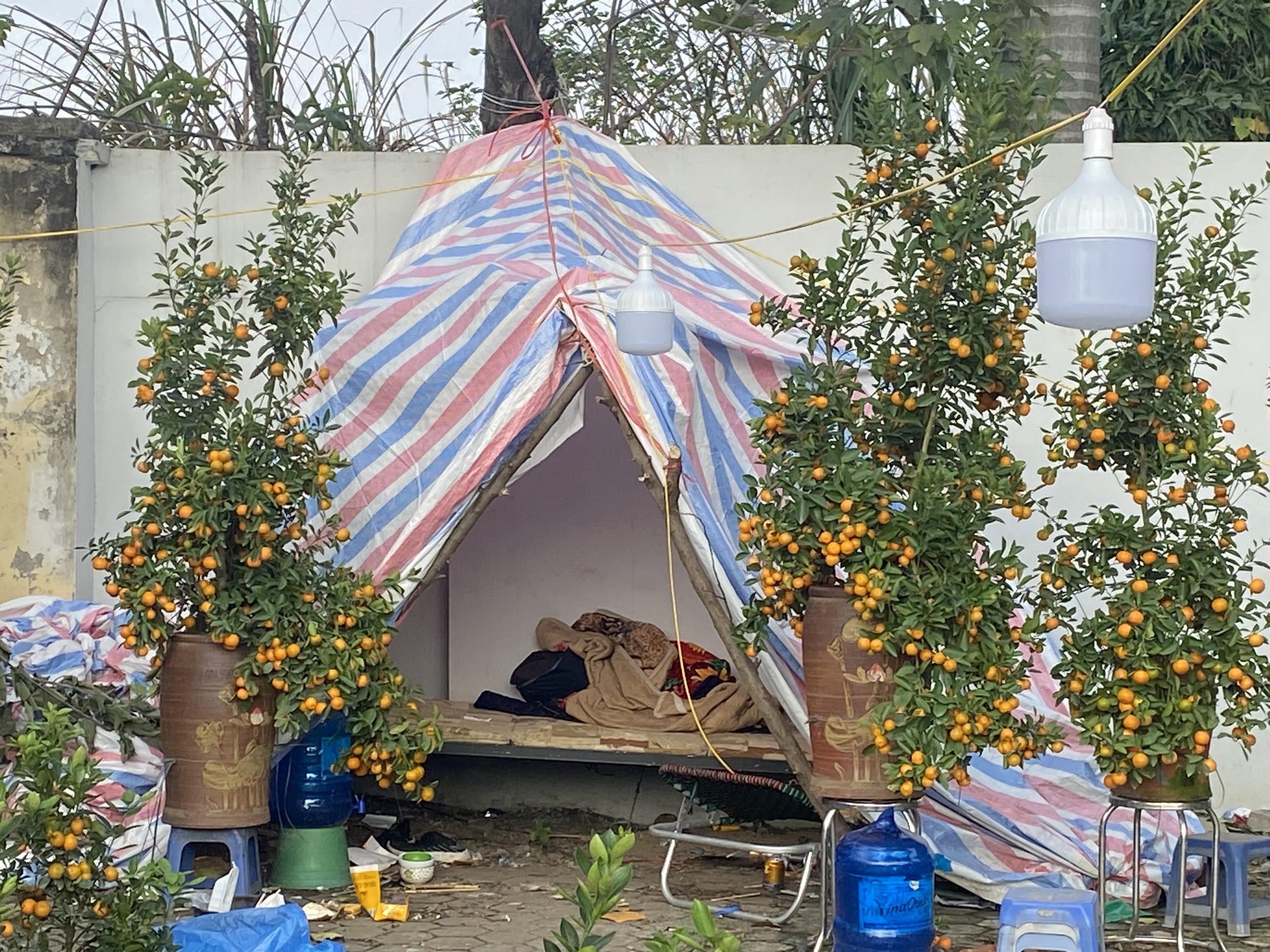 Cũng trên địa bàn quận Nam Từ Liêm, anh Hiển, một người bán quất than thở: “Trời nắng ấm thì không sao, mấy ngày mưa rét chúng tôi cực lắm. Nằm lều rất ẩm và nhiều muỗi”.