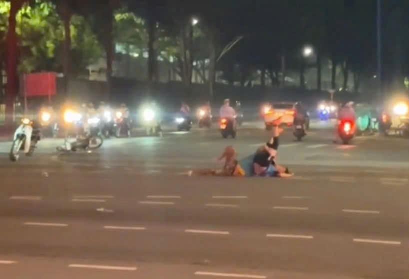 Theo hình ảnh trong clip, sự việc xảy ra vào tối 31/12/2024 trên đường Mỹ Phước Tân Vạn giao nhau với đường NE8, đoạn qua phường Thới Hòa, TP Bến Cát, tỉnh Bình Dương.