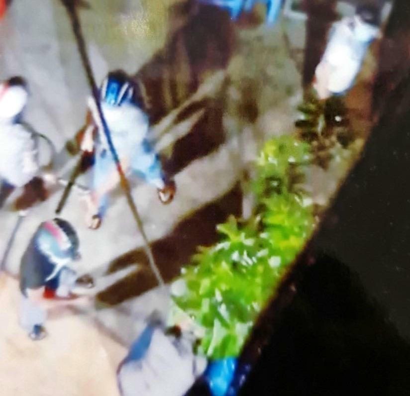 Camera ghi lại hình ảnh nhóm côn đồ cầm hung khí. |