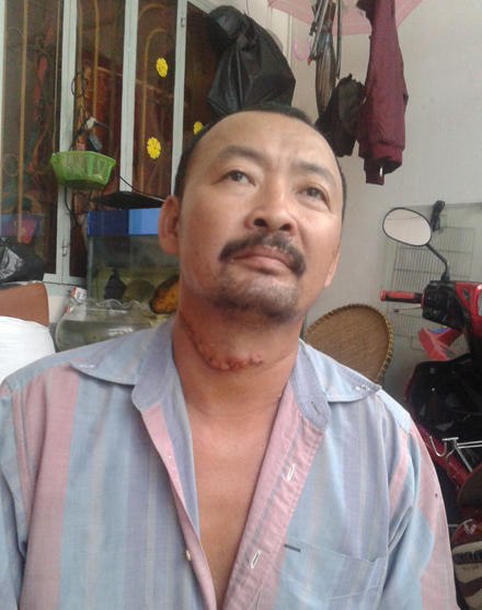 Nhanh trí xô xe, vọt ra ngoài: Bất ngờ cảm thấy đau nhói ở lưng, biết mình gặp phải cướp, đã bị đâm, bác xe ôm vội la lên, xô xe ngã xuống, vọt ra ngoài. Chưa kịp định thần, ông bị một “vị khách” dùng hai tay kẹp cổ, một người giữ lấy tay và dùng dao cứa cổ.