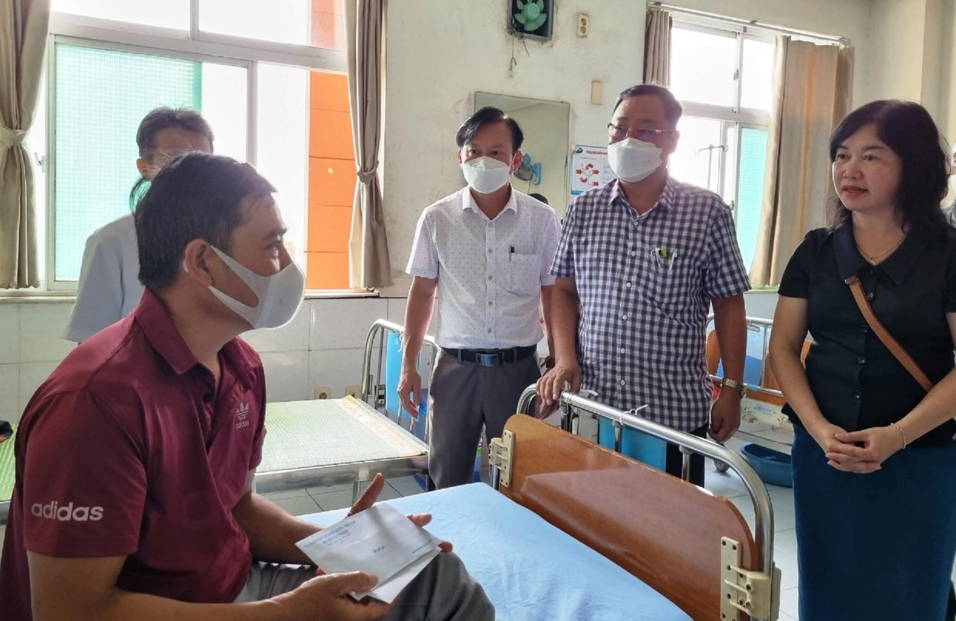 Lãnh đạo huyện Núi Thành thăm hỏi các nạn nhân. |
