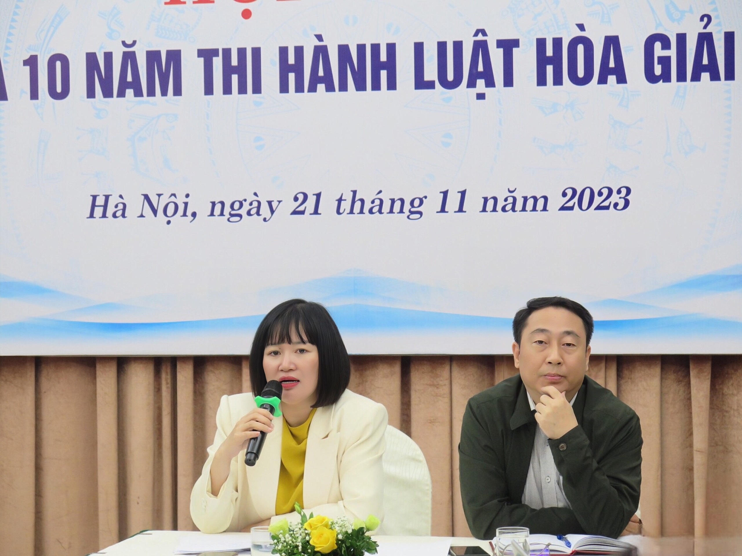 Phát biểu khai mạc, Phó Cục trưởng Cục Phổ biến, giáo dục pháp luật Ngô Quỳnh Hoa cho biết, qua báo cáo của các đơn vị, địa phương, qua các cuộc kiểm tra, Hội thảo, Tọa đàm, Cục Phổ biến, giáo dục pháp luật thấy sau 10 năm thi hành Luật Hòa giải ở cơ sở, ngoài những thành tựu đã đạt được, còn một số vướng mắc, cần có giải pháp, định hướng triển khai để nâng cao hiệu quả của công tác này.