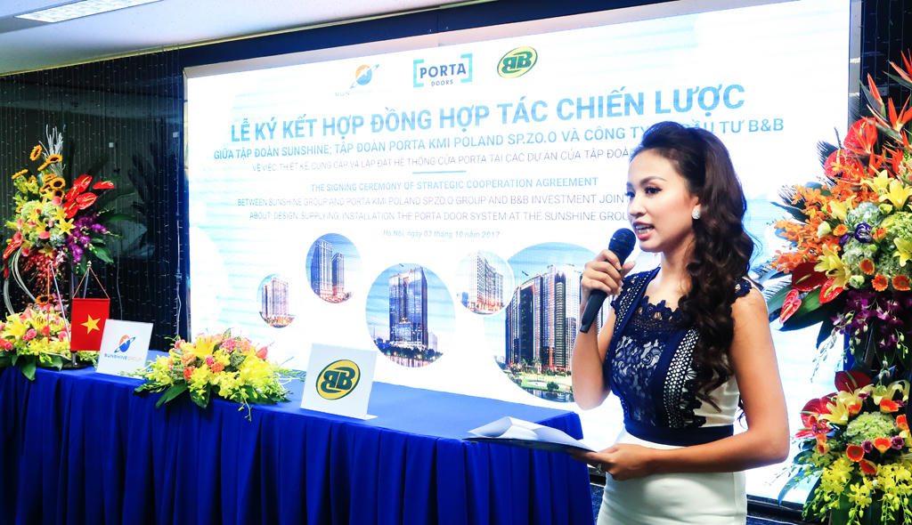 Sáng 3/10, tại Hà Nội, lễ ký kết hợp tác chiến lược 3 bên giữa Sunshine Group – Công ty Porta KMI Poland Sp.Z o.o và Công ty CP Đầu tư B&B trong việc thiết kế, cung cấp, lắp đặt hệ thống cửa Porta đã diễn ra trọng thể.