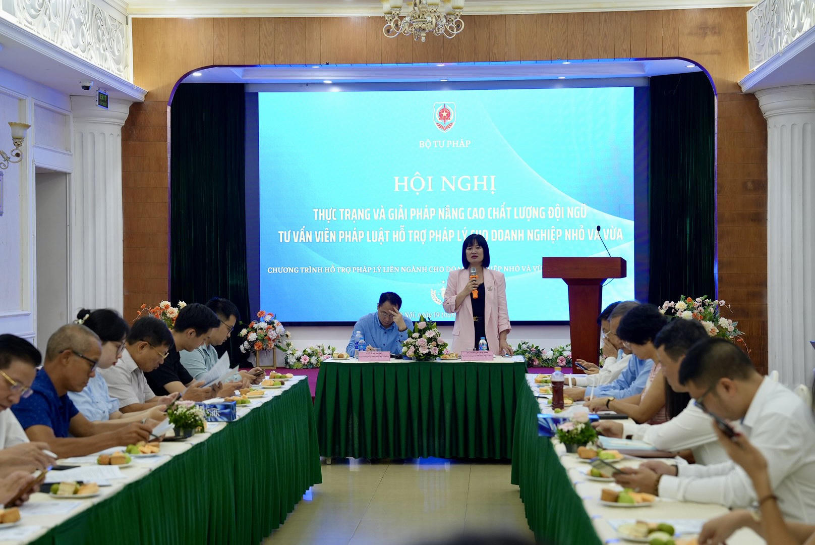 Phát biểu dẫn đề Hội thảo, Phó Cục trưởng Cục PBGDPL Ngô Quỳnh Hoa nêu rõ, Luật Doanh nghiệp nhỏ và vừa năm 2017 quy định hỗ trợ pháp lý là một trong 08 nội dung hỗ trợ cho doanh nghiệp nhỏ và vừa; Nghị định 55/2019/NĐ-CP của chính phủ về hỗ trợ pháp lý cho doanh nghiệp nhỏ và vừa đã xây dựng đội ngũ tư vấn viên pháp luật (TVVPL) và trách nhiệm đội ngũ TVVPL là bảo đảm các điều kiện hành nghề tư vấn pháp luật và thực hiện các quyền, nghĩa vụ của mình theo quy định của pháp luật liên quan đến tư vấn viên pháp luật.