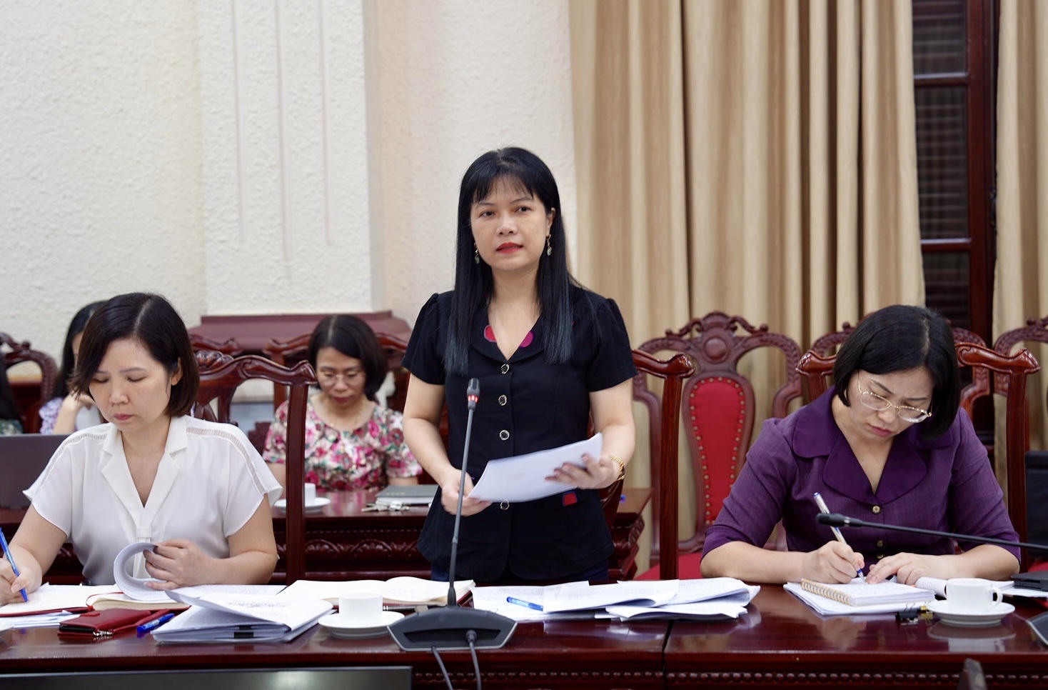Bà Tạ Thị Yên, Phó Trưởng Ban Công tác đại biểu thuộc Ủy ban Thường vụ Quốc hội trình bày dự thảo. |